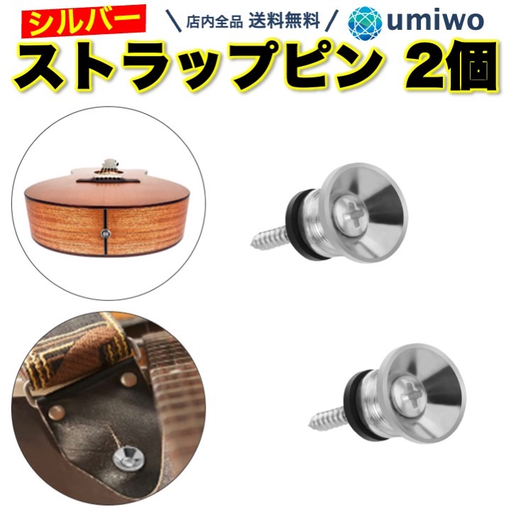 商品名:ストラップピン 2個セット シルバー エンドピン ギター フォークギター エレキギター ウクレレ ストラップ ピン 取り付け 固定 ネジ留め 下穴 ボディ パーツ