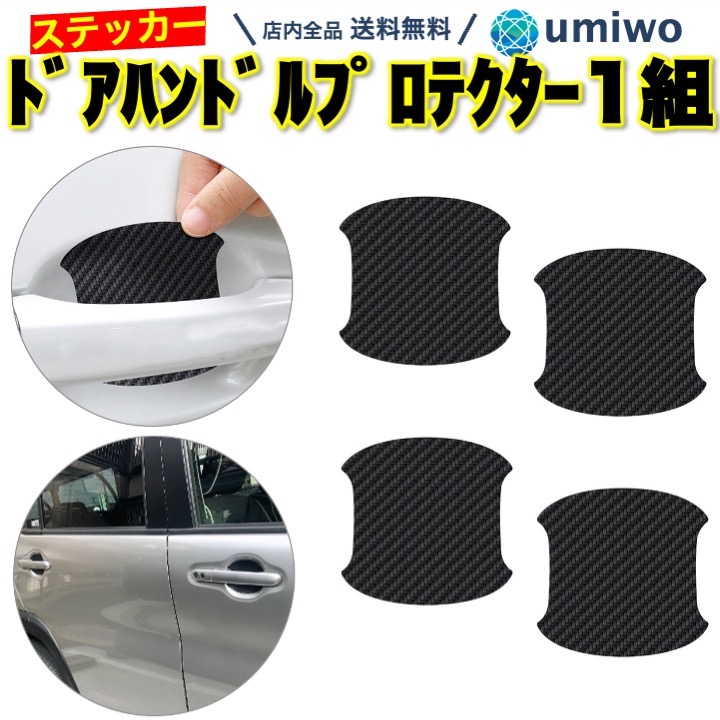 ドアハンドルプロテクター 1組(4枚)セット 黒 カーボンレザー調 ステッカー ドアハンドル プロテクター カーボン ひっかきキズ キズ シール 防止 貼るだけ