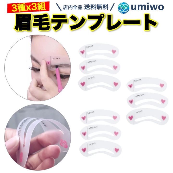 眉毛テンプレート 3種類 3組(9枚)セット 眉毛 プレート 左右対称 アイブロウ メイク ナチュラル アイブロー テンプレート シリコン ライン 柔らかい 眉描き