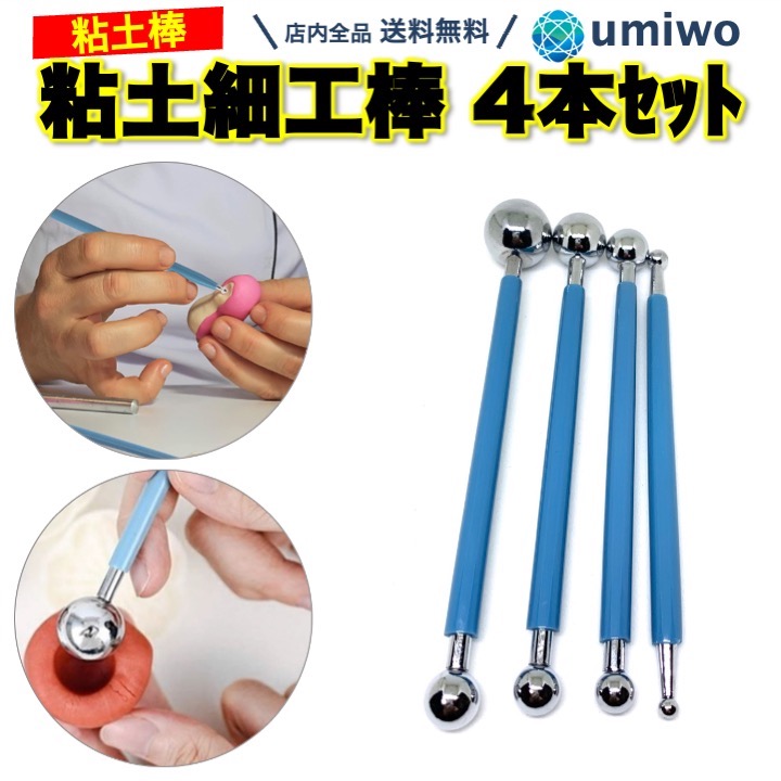 商品名:粘土 細工棒 4本セット 先端8種類 粘土棒 ステンレス 丸め棒 ヘラ セット 丸棒 クレイ グリップ 滑り止め 細工 丸める 伸ばす シュガークラフト