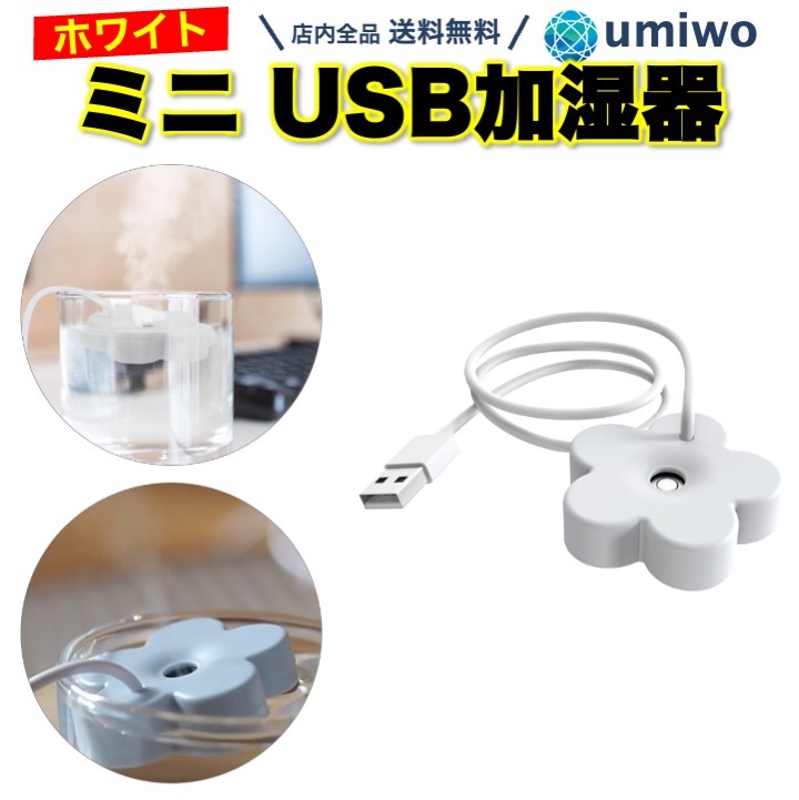 商品名:ミニ USB加湿器 花型 ホワイト コップ 給水 超音波 静音 小型 携帯 旅行 8時間 卓上加湿器 USB 加湿器 寝室 オフィス ミニ加湿器 ポータブル コンパクト 乾燥