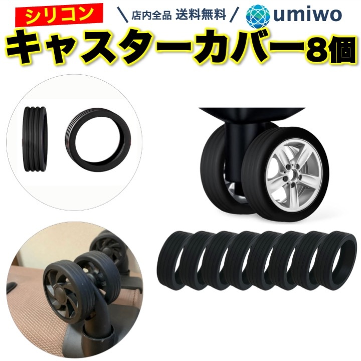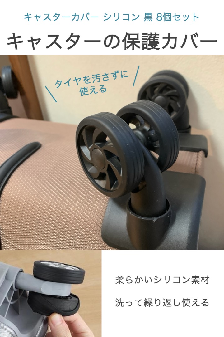 商品名:キャスターカバー シリコン ブラック 8個セット 騒音軽減 スーツケース タイヤカバー ダブルキャスター 静音 汚れ防止 傷つけにくい 水洗い可能 柔らかい