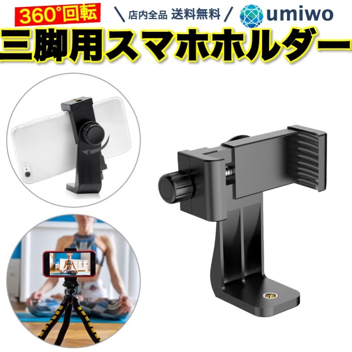 三脚用 スマホホルダー 360°回転 ねじ式 固定 最大幅10.5cm アタッチメント 三脚 スマートフォン 取り付け 撮影 固定 ケース クランプ スマホ三脚ホルダー
