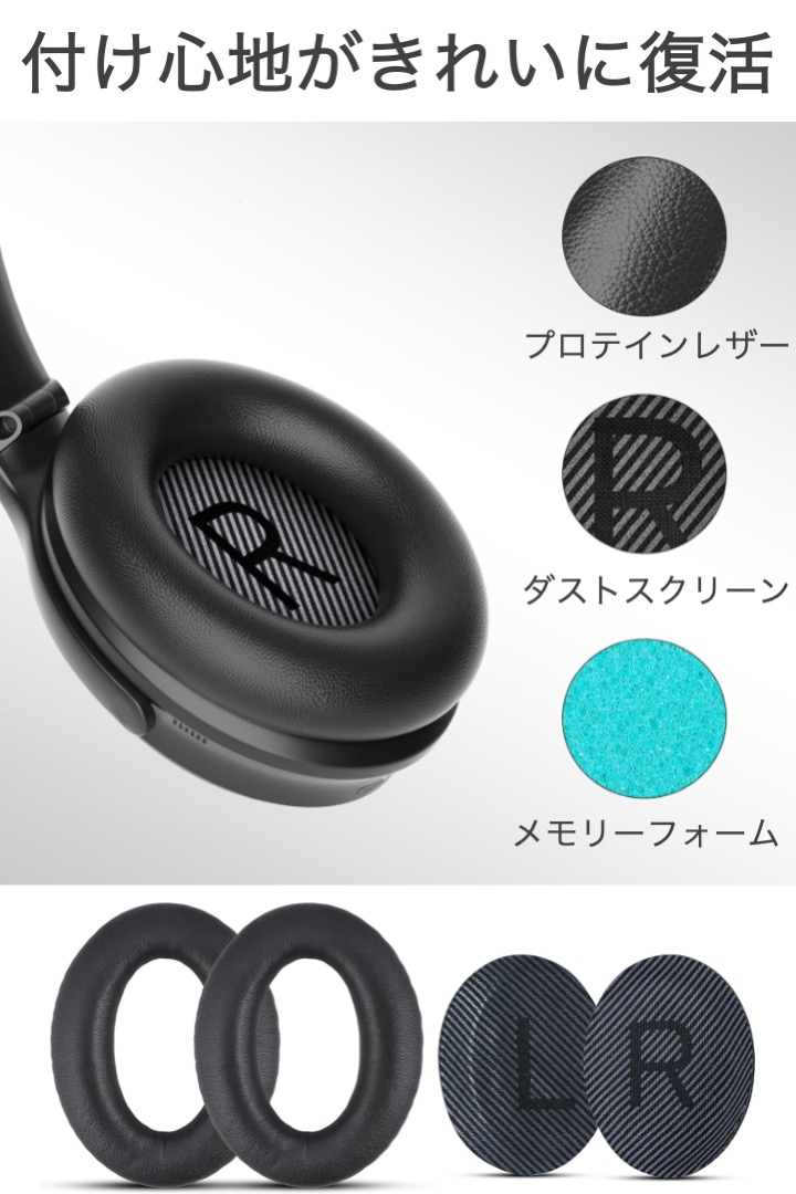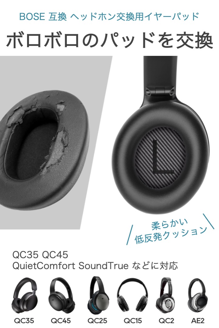 商品名:BOSE 互換 交換用 ヘッドホン イヤーパッド QC45 QC35 QuietComfort SoundTrue 対応 ヘッドフォン クッション フォーム 交換 ヘッドホンパッド ソフトレザー 劣化