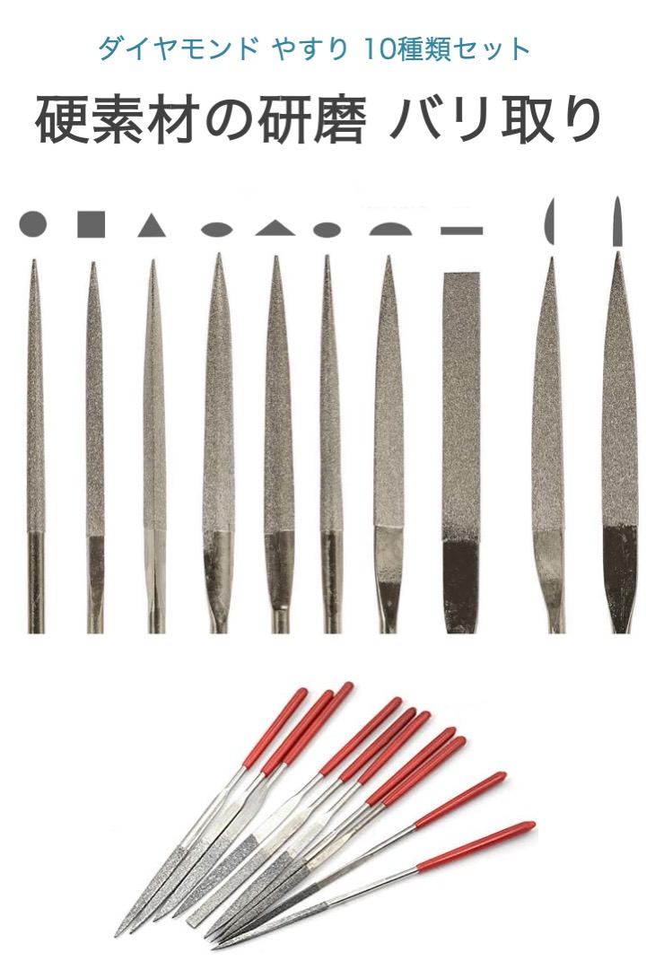 細い プラスチック バリ取り 面取り 仕上げ ダイヤモンドヤスリ やすりセット