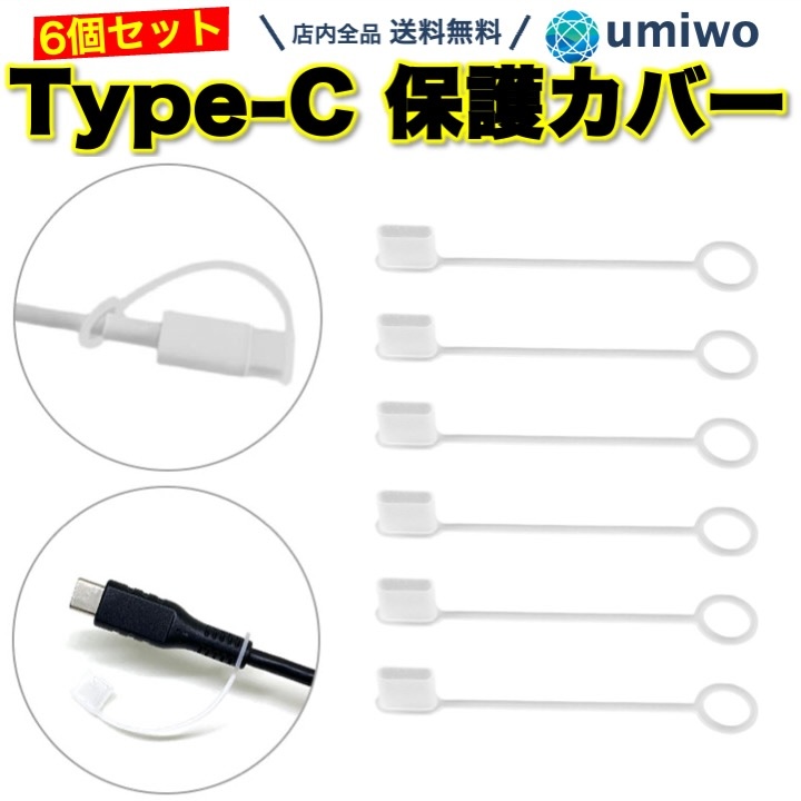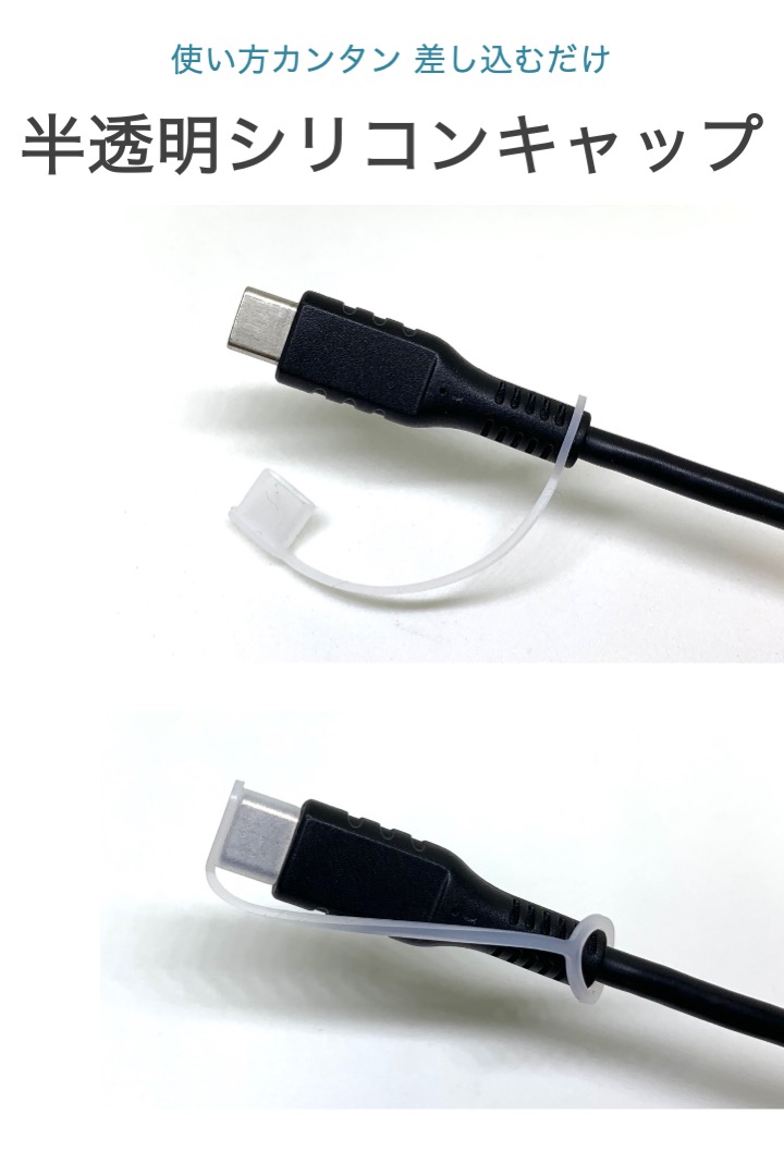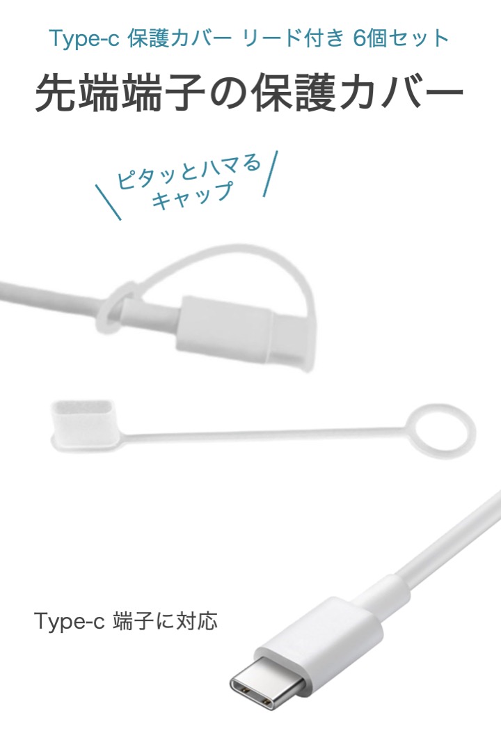 Type-c 保護カバー オス端子 リード付き 6個セット シリコン 半透明 カバー 脱落防止 紛失防止 保護キャップ Type-c端子 接続部分 劣化 破損 キャップ