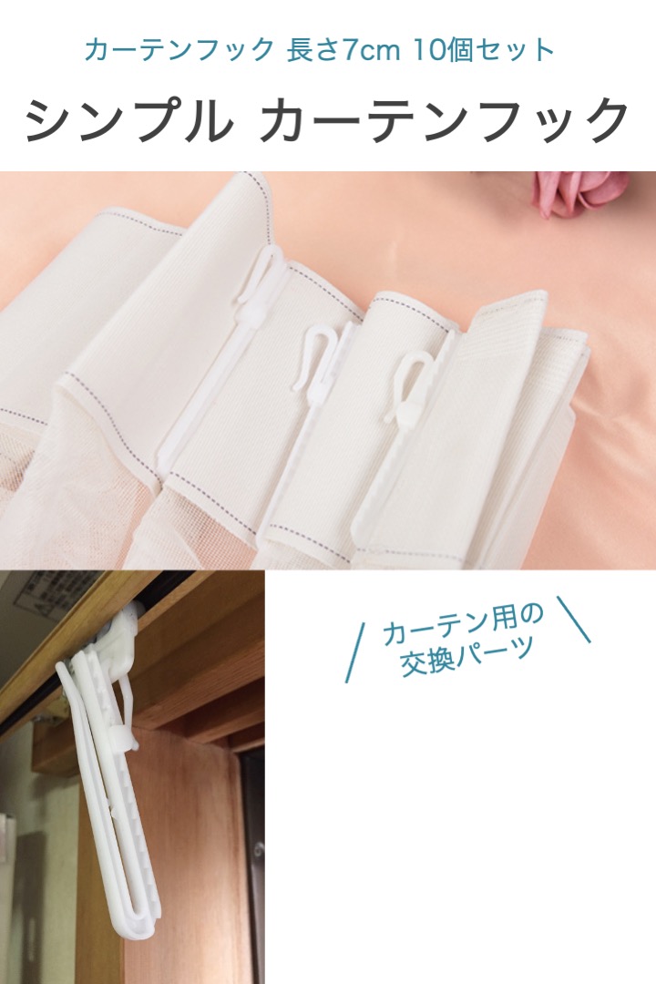カーテンフック 長さ7cm 全長75mm 10個セット アジャスター 機能 高さ 調整 調節 破損 劣化 交換 修理 DIY 自作 カーテン シンプル カーテン フック