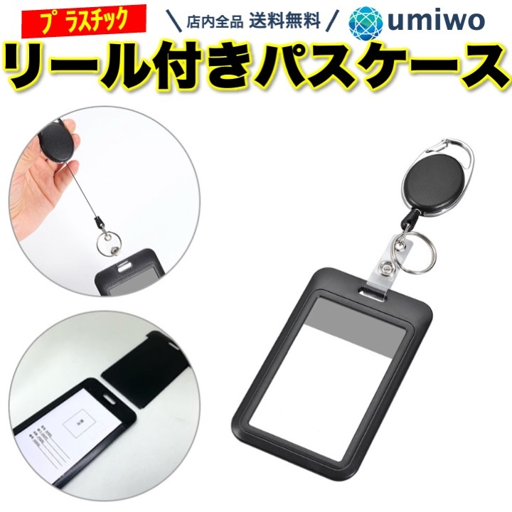 リール付きパスケース プラスチック 黒
