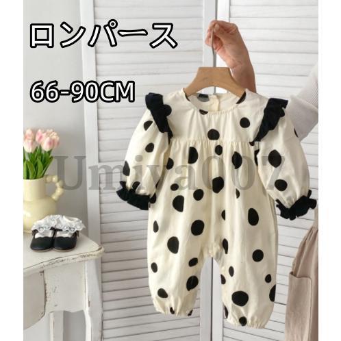 ベビー服 66 70 80 90 ロンパース カバーオール 春 デニム 赤ちゃん オーバーオール フリルドット柄ロンパース女の子 ボトムス 出産祝い