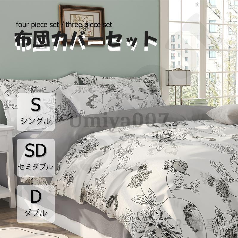 布団カバー 3点セット 4点セット シングル ボックスシーツ 寝具カバーセット 枕カバー 柔らかい 肌に優しい 洋式和式兼用 ベッド用 洗える 掛け布団カバー 花柄