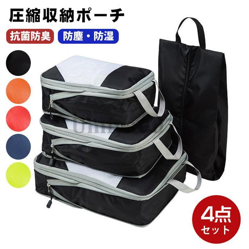 爆買 4点セット 圧縮バッグ コンパクト 旅行用圧縮袋 トラベルポーチ シューズバック 収納ポーチ ファスナー圧縮 撥水 仕分け 収納ケース 持ち手付き 省スペース