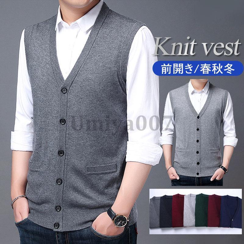 ニットベスト メンズ ジレ 前開き 春秋冬 チョッキ 暖かい Vネック トップス 防寒 保温 ビジネス 重ね着 仕事 ゴルフ