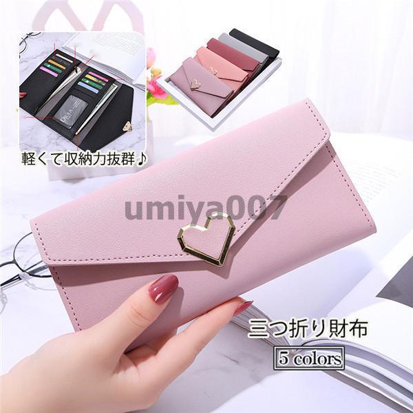 長財布 三つ折り財布 レディース ハート柄付き カード入れ 大容量 サイフ ロング 小銭入れ 開運 可愛い 外出 母の日 プレゼント