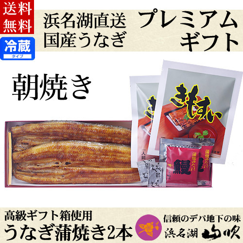 | 商品内容 | 国産朝焼きうなぎ蒲焼き2尾 肝吸い2袋 たれ・粉山椒各2袋 ※1尾115g以上※ お召し上がり方の栞(しおり)付です。 |