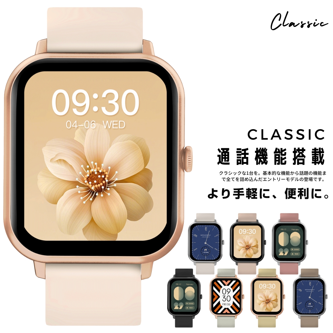 1)通話機能搭載 2)最新1.83インチ フルスクリーン 3)日本語対応(アプリ/表示画面), SNS(LINE対応) 4)50種類以上の壁紙 5)長時間使用(待機状態約15日間/通常5-7日間) 6)24時間健康管理/睡眠記録他 7)スポーツモード搭載(歩行/カロリー他) |