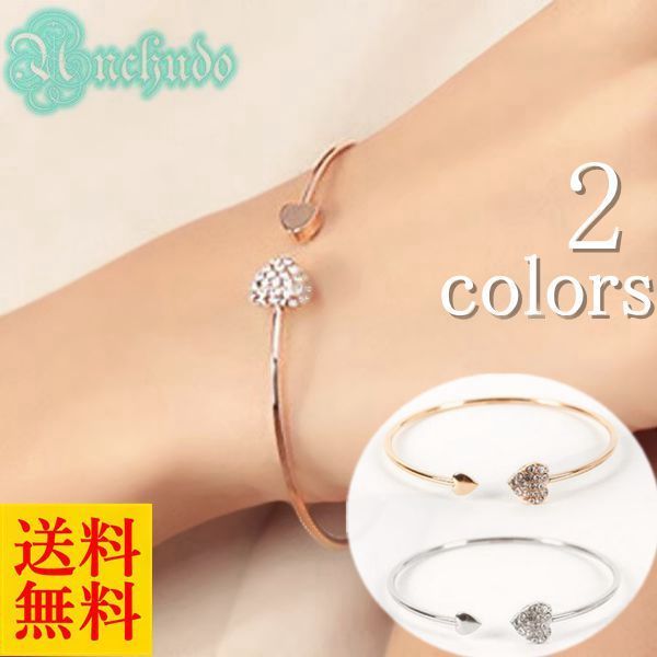 2つのハートモチーフ バングル レディース ブレスレット ラインストーン 女性 プレゼント