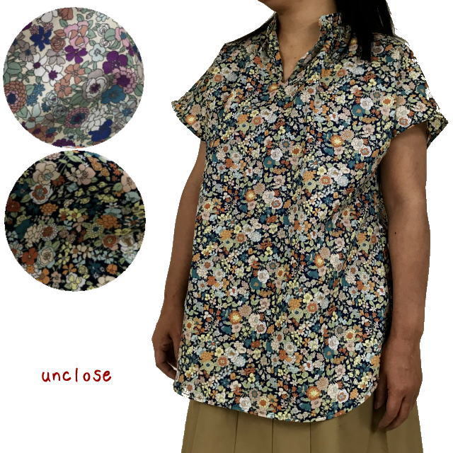 60ローンの小花プリントで作るスリットカラーチュニックのキットです。