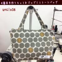 可愛い水玉柄プリントで作るジップミニトートバッグのキットです。