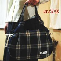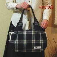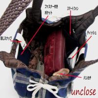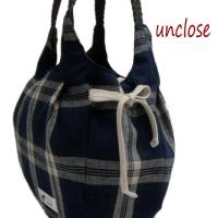 サイドのリボンでマチ巾を調整できるたっぷり収納のバッグです