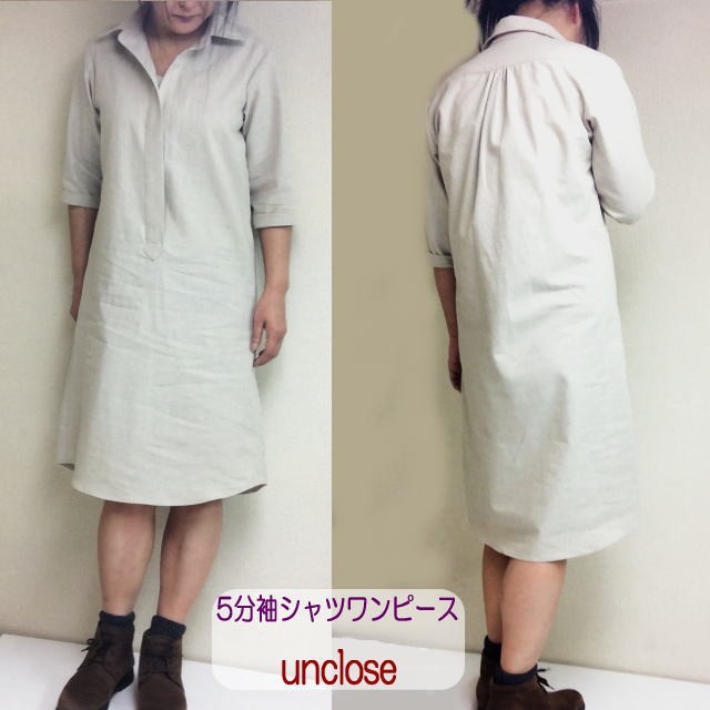 台衿付きのシャツワンピースはかぶりタイプの型紙です。
