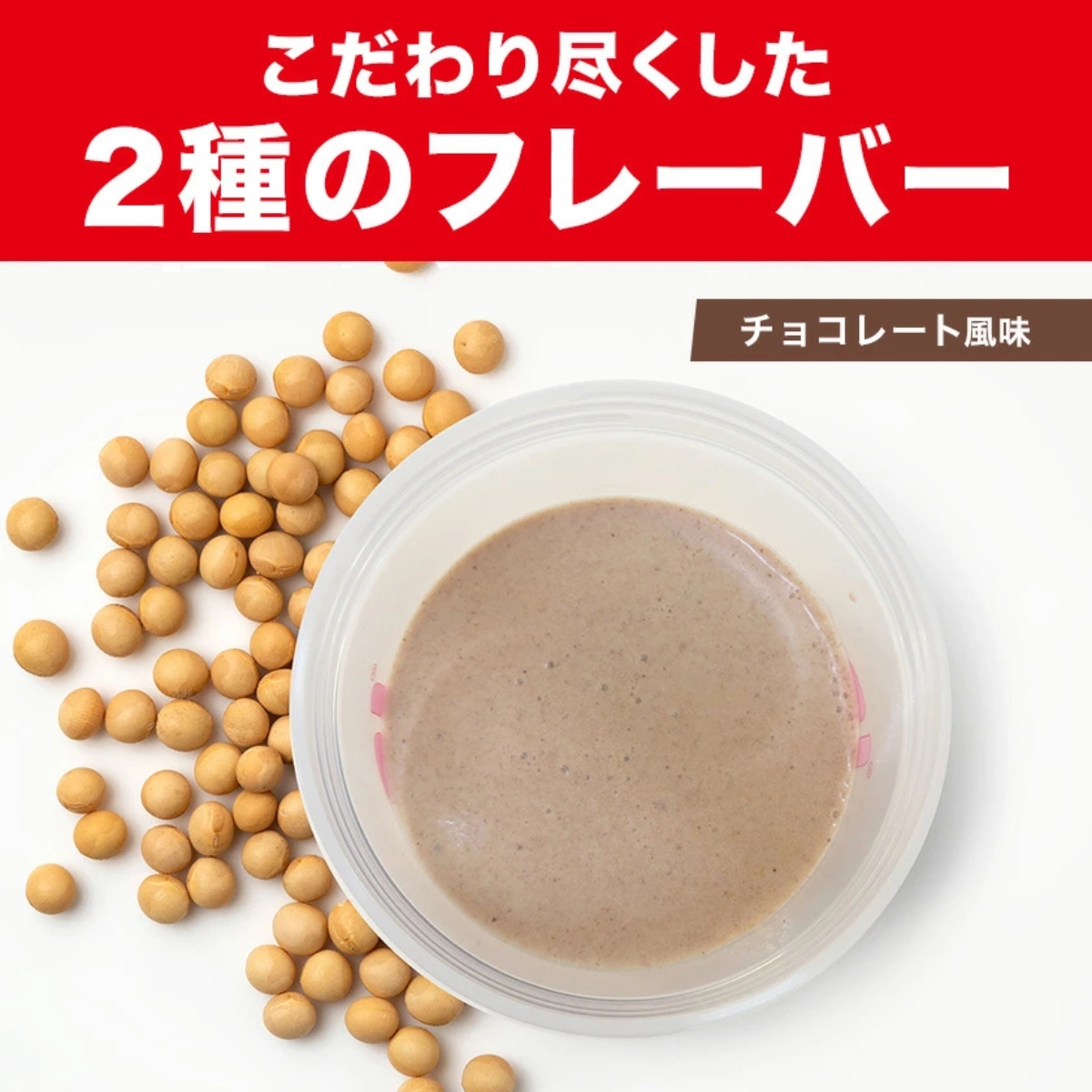 大豆たんぱく(国内製造)、ココアパウダー、果糖、デキストリン、食塩/香料、乳化剤、クエン酸、甘味料(ステビア)、増粘剤(グァーガム)