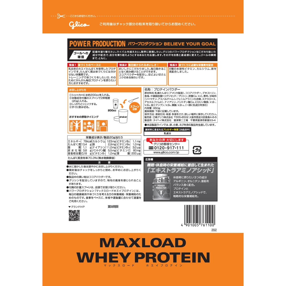 グリコ プロテイン パワープロダクション マックスロード ホエイプロテイン チョコレート味 850g