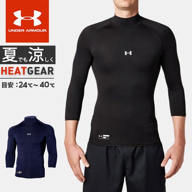 ☆ネコポス アンダーアーマー メンズ インナー 七分袖 シャツ ハイネック UA ヒートギア アーマー コンプレッション 3/4モックネック 野球 1358644 あすつく