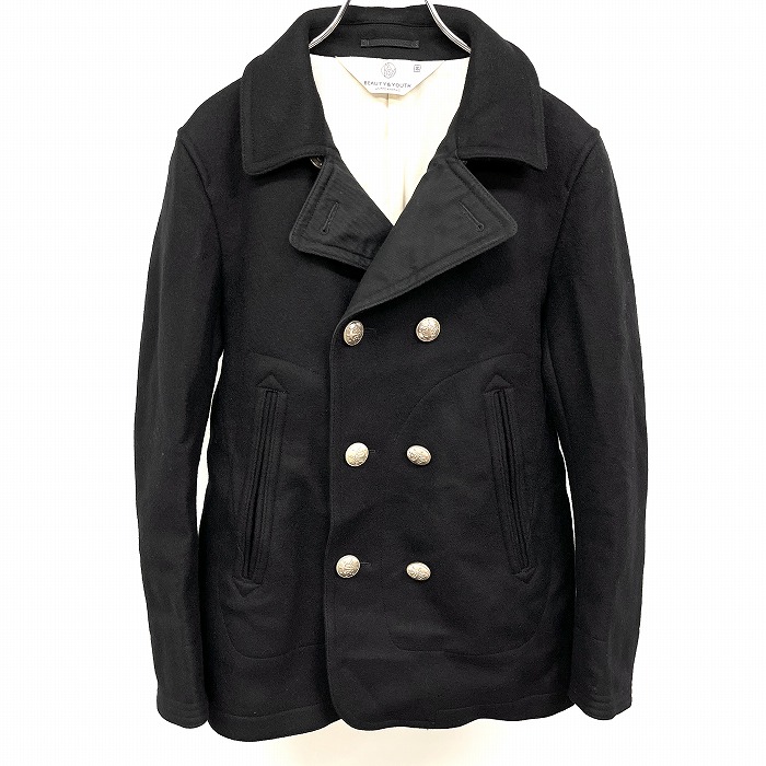 | 商品タイトル | BEAUTY&YOUTH UNITED ARROWS - S レディース(メンズ?) メルトン ピーコート 無地 長袖 毛100%(袖裏:キュプラ100%/胴裏:綿100%) 黒 |