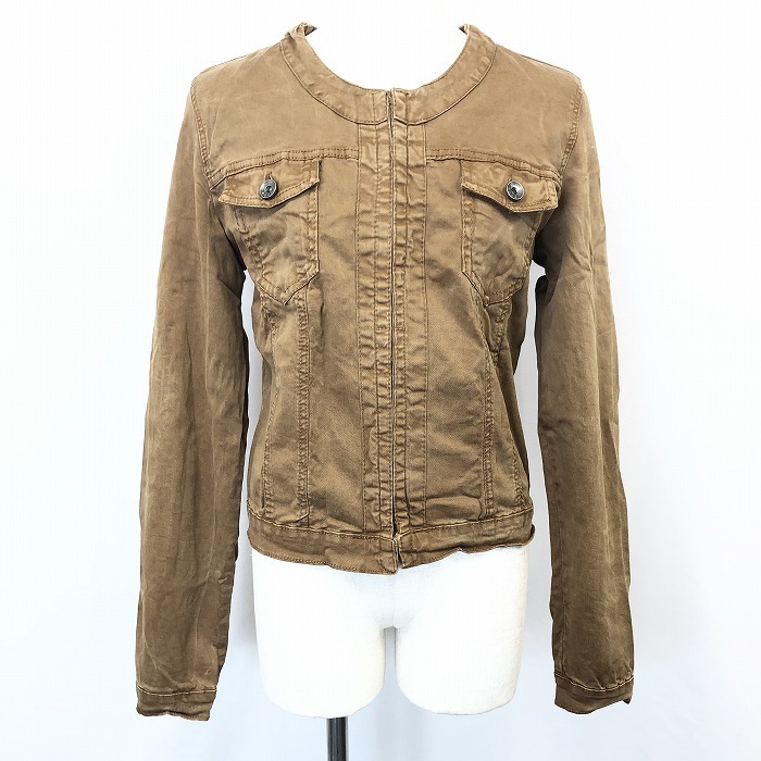 | 商品タイトル | FUTURUM... フトゥールム S レディース インポート古着 イタリア製 ノーカラージャケット フロントホック ストレッチ 無地 長袖 ブラウン |