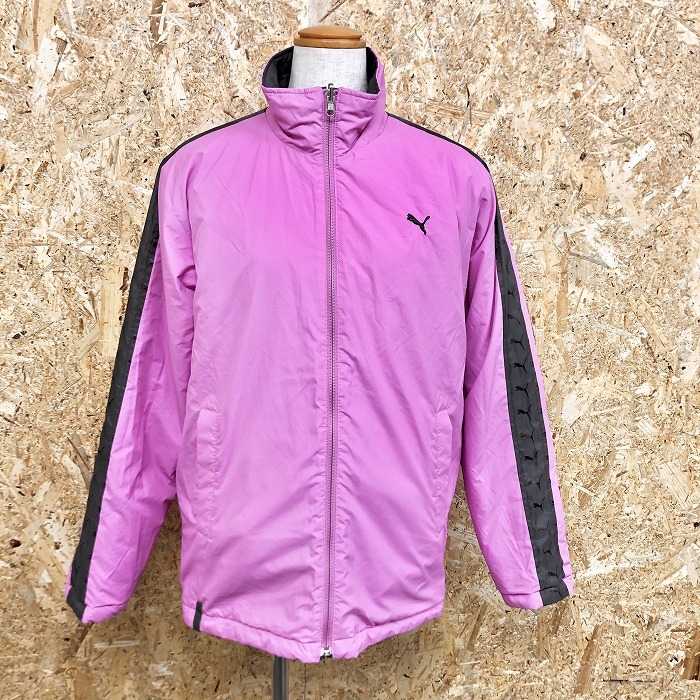 | 商品タイトル | PUMA プーマ L レディース 若干薄手 中綿ジャケット リバーシブル ロゴ刺繍 ハイネック ジップ 長袖 ポリ100% ピンク×チャコールグレー系 |