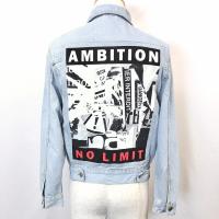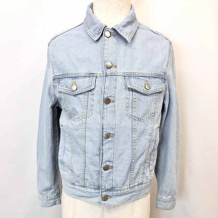 | 商品タイトル | Bershka ベルシュカ XS メンズ 男性 デニムジャケット Gジャン ジージャン バックプリント 英字 長袖 綿100% コットン ライトブルー 薄青 |