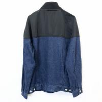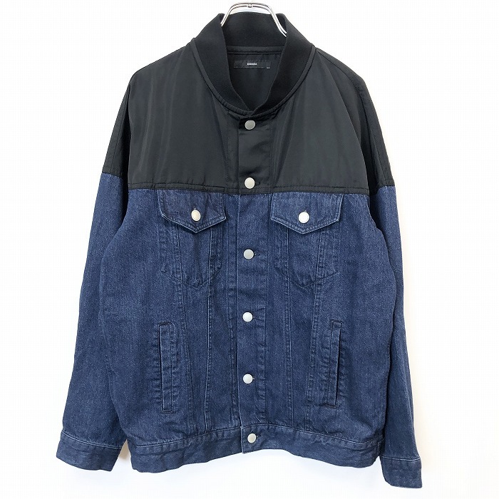 | 商品タイトル | EMODA エモダ F レディース デニムジャケット トラッカージャケット 肩が別生地 バイカラー 無地 長袖 綿100%(肩部分:ポリ100%) 青×黒 |