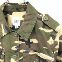 | 商品タイトル | GAP ギャップ S レディース ミリタリー シャツジャケット ウッドランドカモ 迷彩 リップストップ ボタン留め 長袖 綿100% 緑×茶系×紺 |