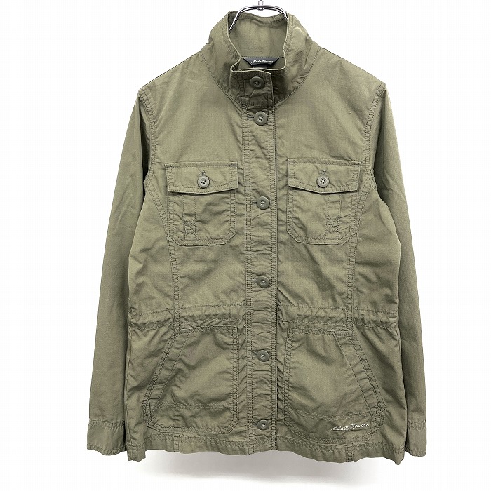 | 商品タイトル | エディーバウアー シャツジャケット カバーオール 長袖 薄手 リップストップ ハイネック 裏地無し 綿×ナイロン XS グリーン レディース |