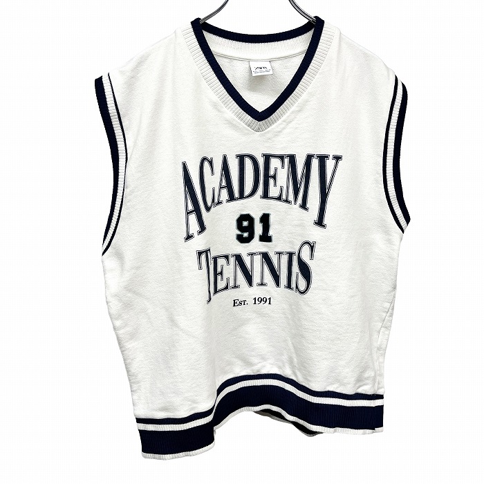 | 商品タイトル | ザラ ZARA スウェットシャツ ノースリーブカットソー 裏毛 Vネック 英字プリント 綿×ポリ L オフホワイト 白系×紺 メンズ(レディース?) |