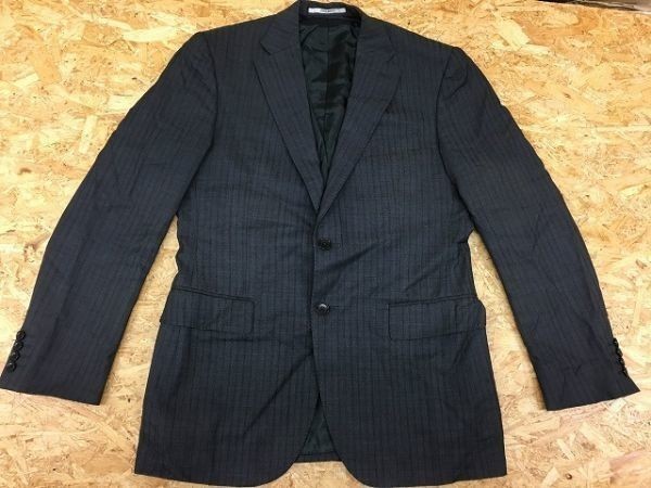 | 商品タイトル | JEAN RENO ジャンレノ サイズ96A7 メンズ テーラードジャケット 肩パッド ストライプ 総裏地 センターベント ノッチドラペル 長袖 グレー系 |