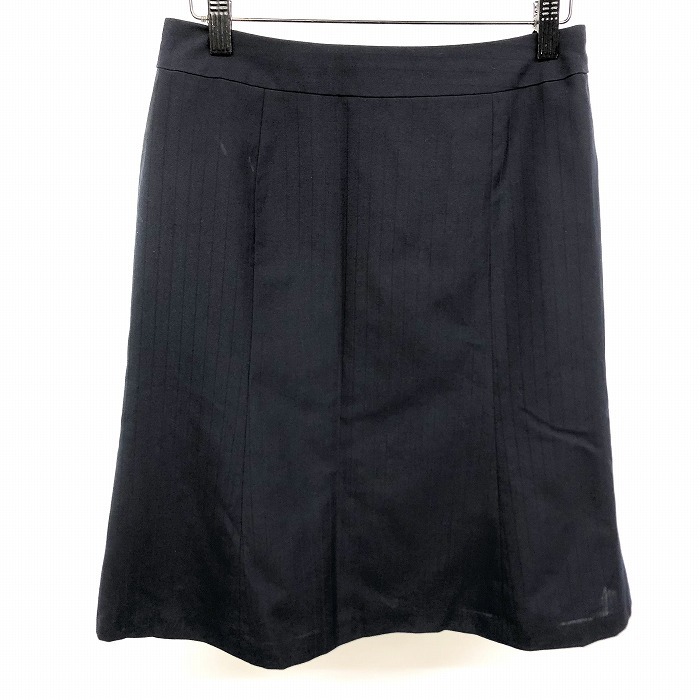 | 商品タイトル | TAKA:Q タカキュー L レディース 若干薄手 Aラインスカート 同色ストライプ 裏地付き 後ろファスナー ひざ丈 ポリ×ウール ダークネイビー |