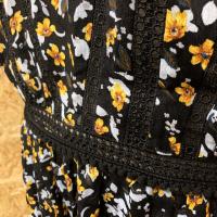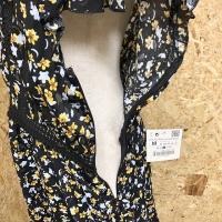 | 商品タイトル | ZARA BASIC ザラ M レディース 薄手 花柄Vバックシフォンチュニック ひざ丈 半袖 ハンカチスリーブ レーヨン100% ブラック×イエローなど |