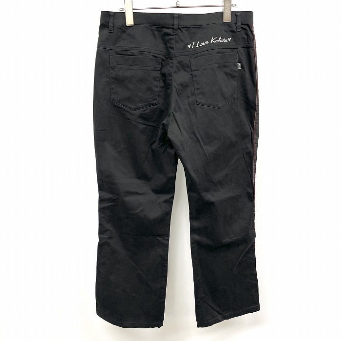 | 商品タイトル | Kolwin コルウィン 15 レディース ゴルフ フレアパンツ 英字とハートの刺繍 サイドライン 綿×ポリウレタン ブラック×レッド×ホワイト 黒 |