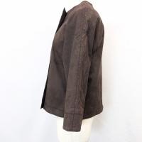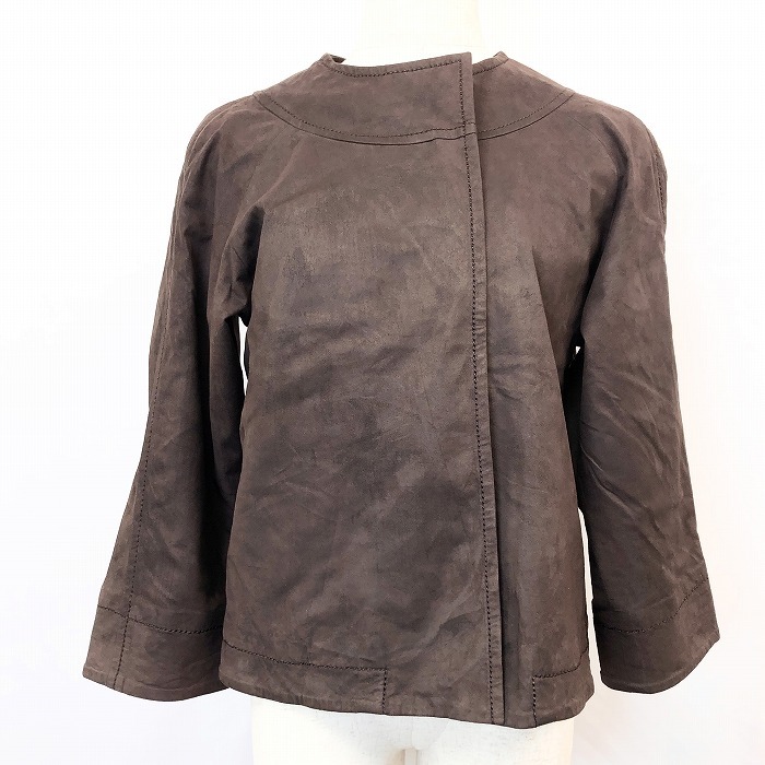 | 商品タイトル | 【日本製】 Vaudeville ボードビル - レディース フェイクレザーシャツジャケット 裏地付き ノーカラー 1つボタン 長袖 - ダークブラウン |