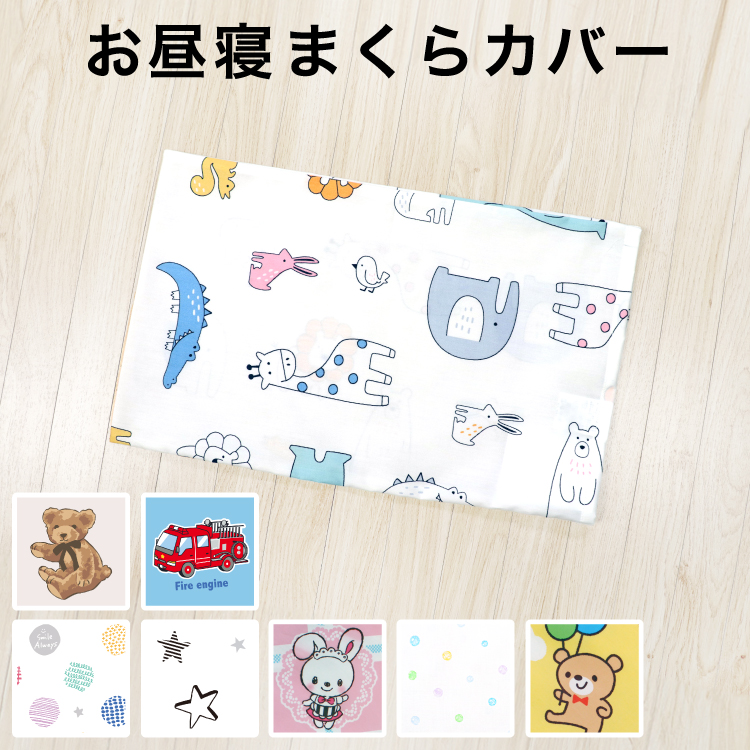【お昼寝枕カバー】(ネームタグ付)サイズ:42×26cm※約31×21cmのまくら用です組成:綿100%(両面プリント)※タンブル乾燥はお避けください。縮んで入らなくなる可能性がございます。