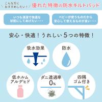 表面は吸水効果に優れた綿100%パイル地で、汗をしっかり吸収。中綿入りで適度な厚みがあり、やわらかな寝心地です。裏面は防水加工がされており、敷布団を汚れからしっかり守ってくれます。裏側四隅にはゴムがついているので、敷布団にぴったりフィットしズレを防いでくれます。