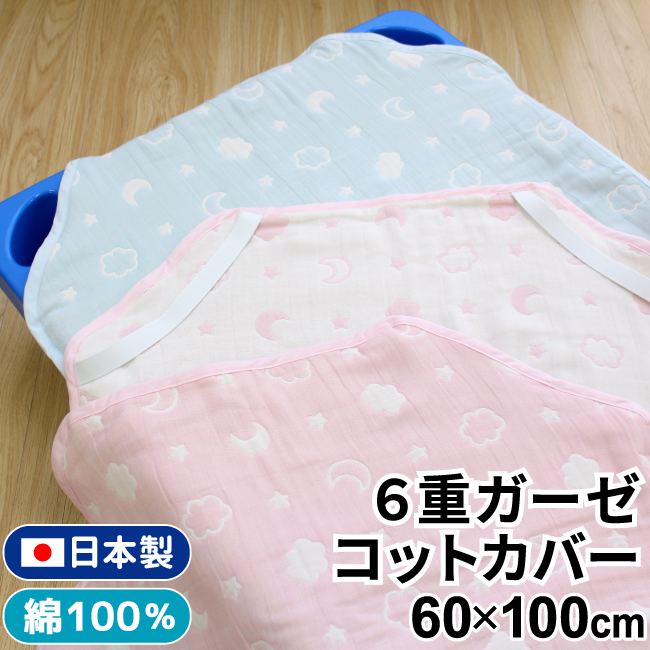 全て国産の6重ガーゼコットカバー。シンプルな月と雲柄が人気。6重に重ねられたガーゼ素材で1年中使えて便利です。ピンクとサックスの2色展開で、綿100%のやさしい肌触り。丸洗いできます♪