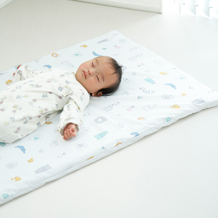※お昼寝布団は、保育園・幼稚園のお昼寝用として、持ち運びに便利なよう簡易的に作られていますので、赤ちゃんの長時間の睡眠には適しておりません。