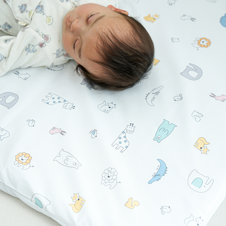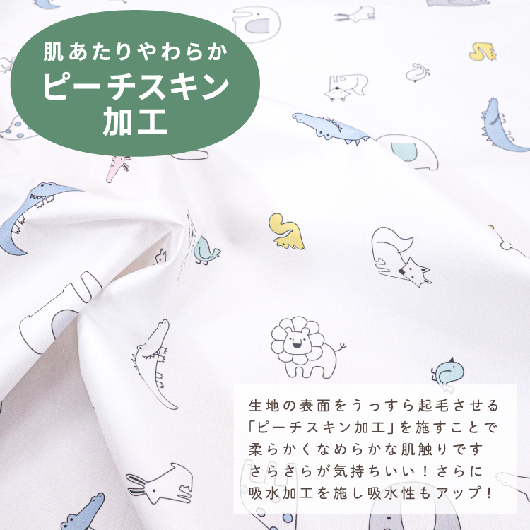 汗っかきな赤ちゃんも快適な睡眠ができるように考えられた、吸水加工を施したなめらかでさらっとした肌触りのピーチスキン生地を使用しました。