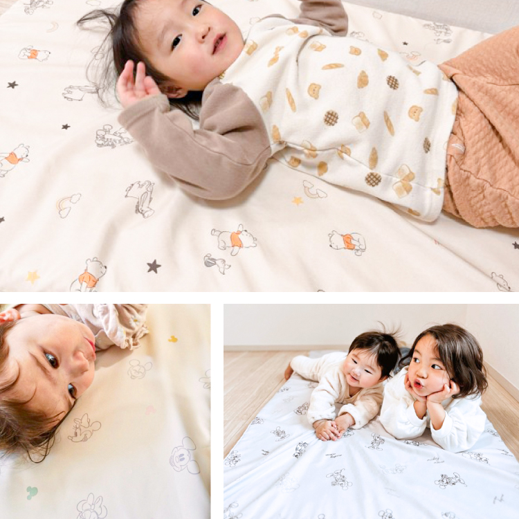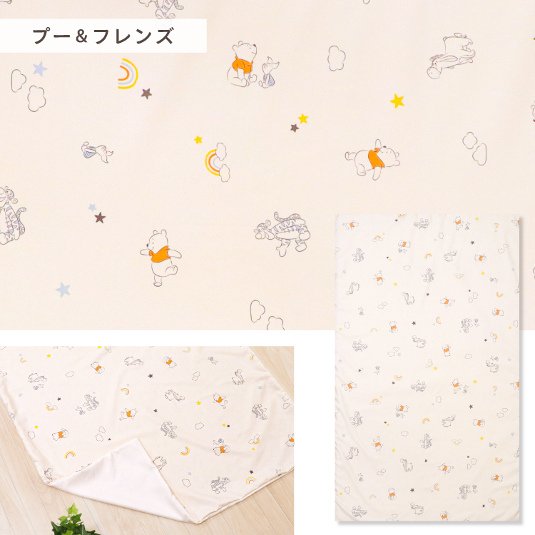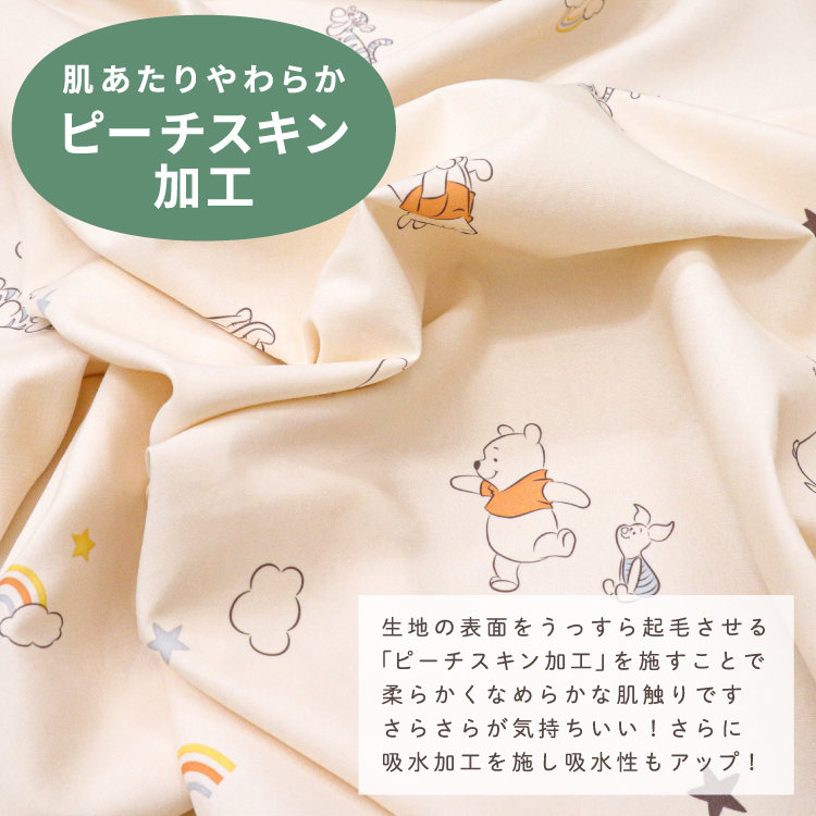 さらっと吸水 肌あたりやわらか汗っかきなお子様も快適な睡眠ができるように考えられた、吸水加工を施したなめらかでさらっとした肌触りのピーチスキン生地を使用。