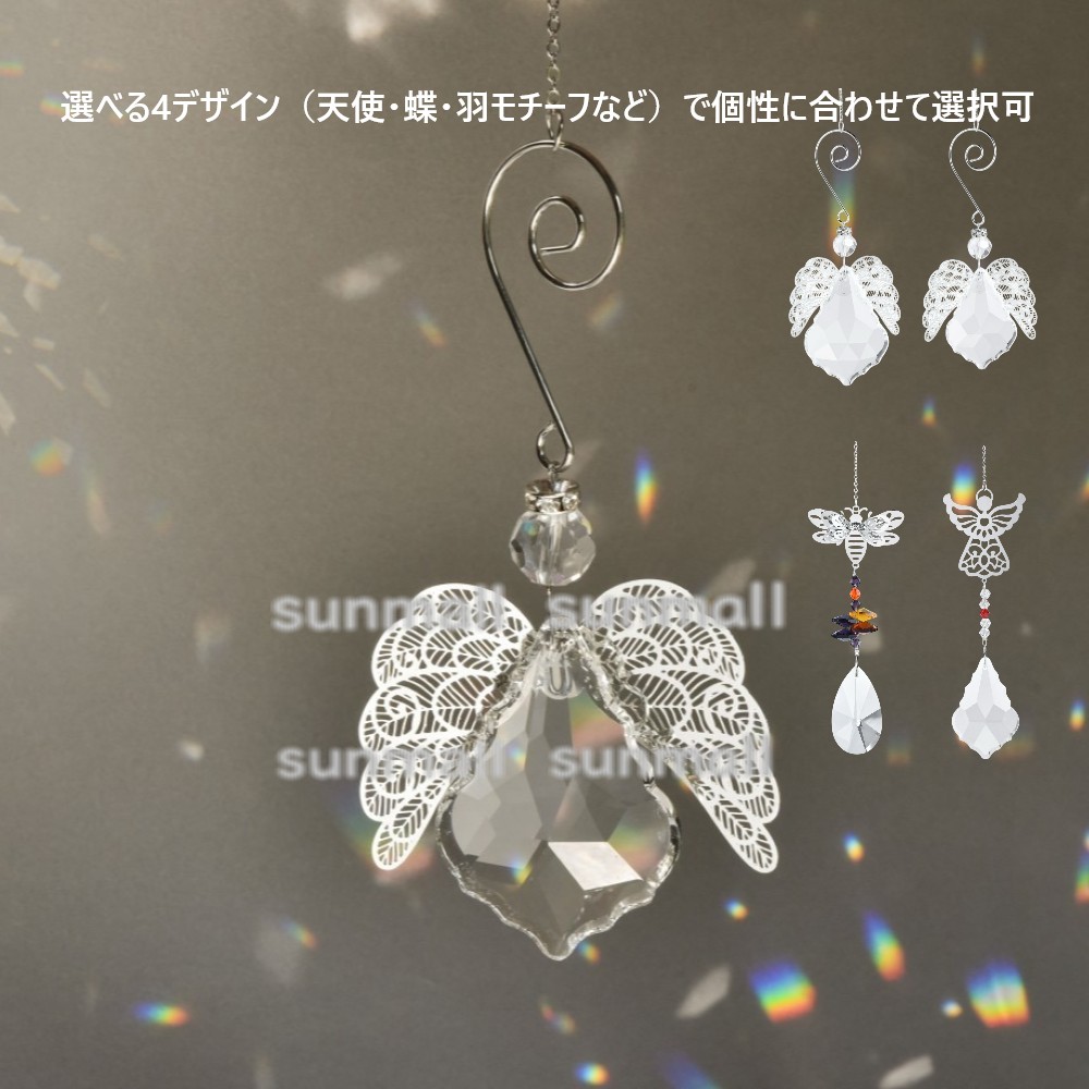 (1点)選べる4タイプ♪ミニサンキャッチャー 天使モチーフ/クリスタルインテリア 光を受けて虹のプリズムを広げる、美しいサンキャッチャー