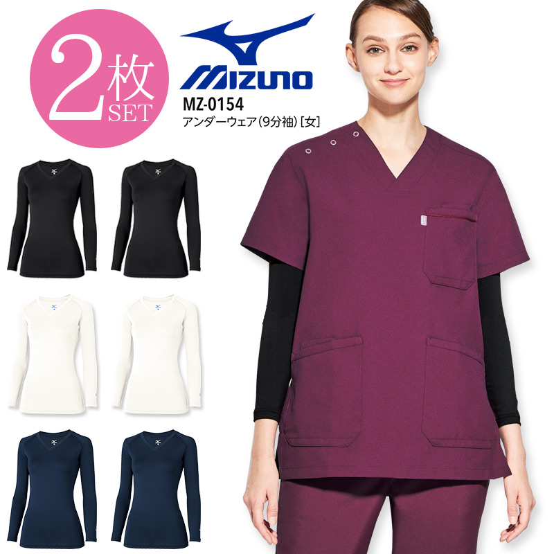 【2枚セット】ミズノ アンダーウェア 女性用 9分袖 医療 白衣 MZ-0154 看護師 ナース 介護士 ストレッチ インナーウェア 病院 クリニック 医者 レディース
