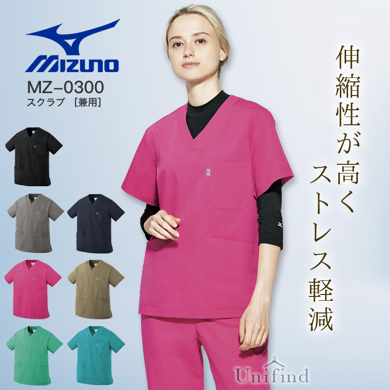 ミズノ スクラブ MZ-0300 男女兼用 ストレッチ 制菌加工 看護師 ナース 介護士 病院 クリニック 医者 医療用 白衣 メンズ レディース 制電 mizuno