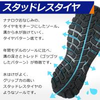 靴底はタイヤをモチーフにしたトレッドパターン。水はけがよくグリップ力の高い、冬の路面に特化したスタッドレスタイヤのようなソールです。柔らかく弾力性に優れたゴムを使用し、さらにグリップ力が増しました。